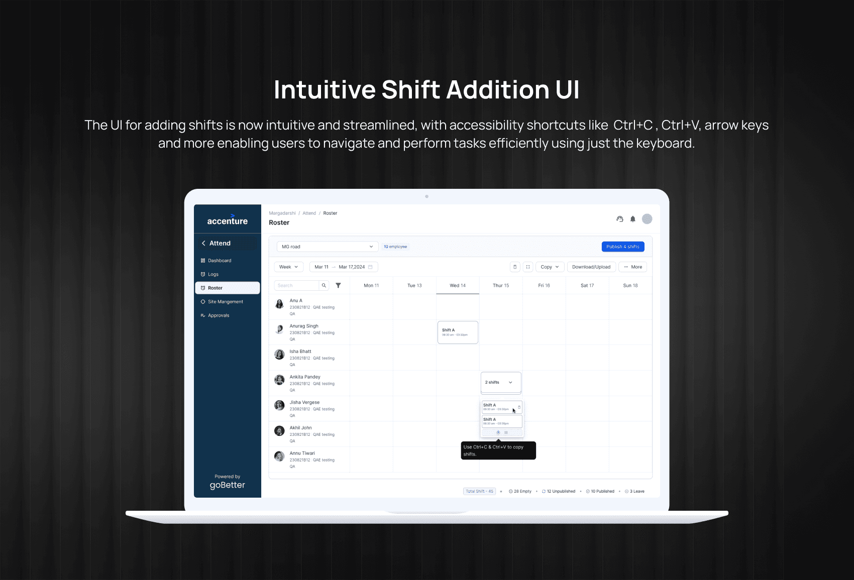 The Betterplace/ Gobetter roster enables enterprises to efficiently manage the schedules and shifts of their frontline workers across multiple locations.