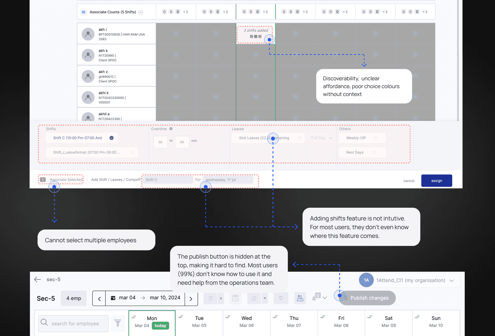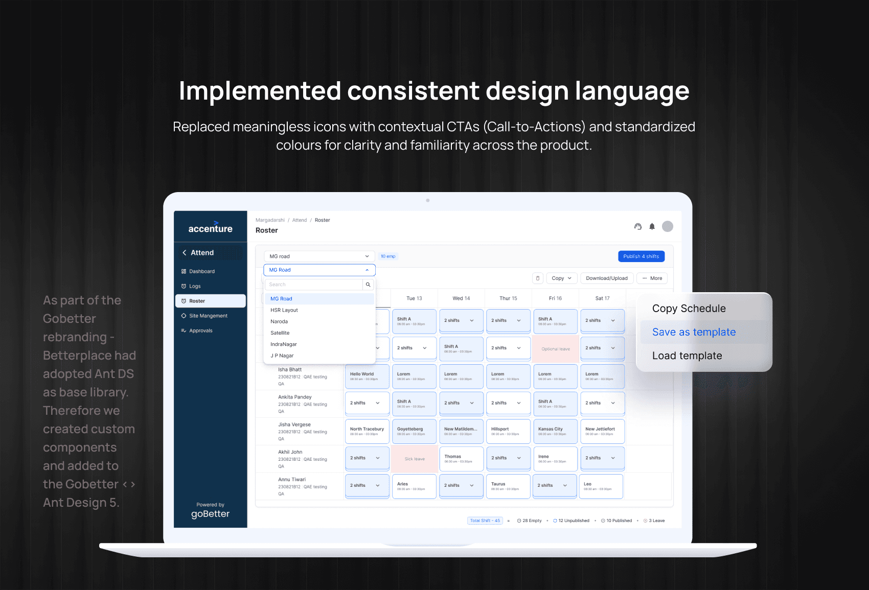 Functionality improvements and features were prioritized for phased implementation after discussions with product and engineering besides user feedback. The redesign aimed to create a scalable, efficient, and user-friendly tool that addresses core user challenges and improves workforce management. We focused on fixing UX issues since we already had Gobetter Ant Design 5 for UI support.