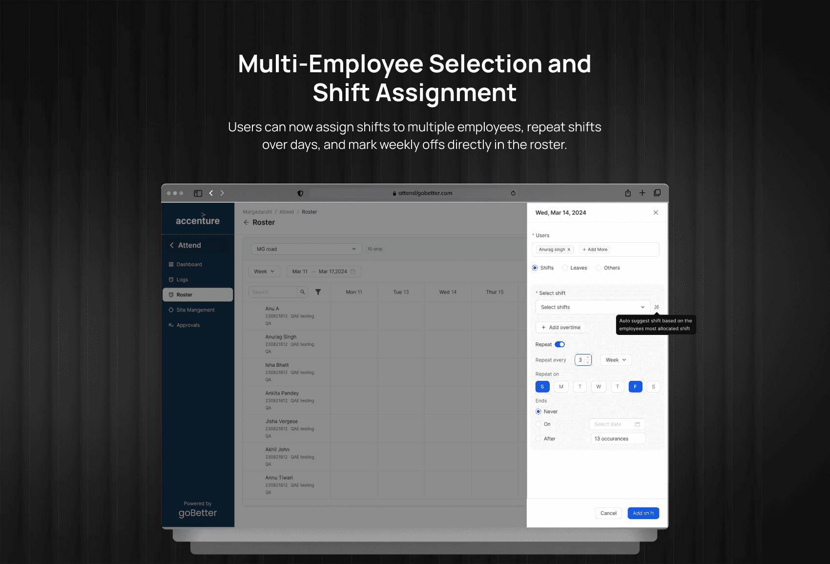 1️⃣ Multiple employee selection and shift assignment